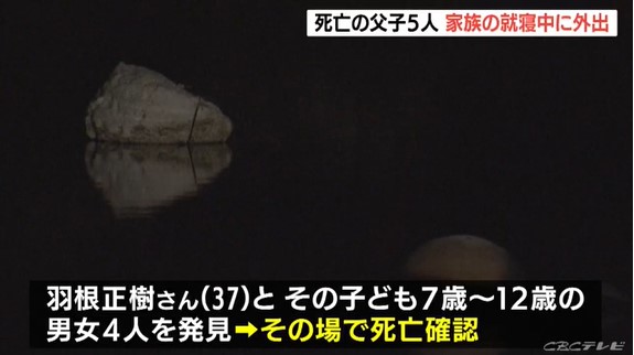 5人は、今月11日の早朝、家族が就寝中に何も告げずに車で出掛けます。13日になって、正樹さんの妻が「夫と子供が出かけて帰って来ない」と警察に行方不明者届を提出し、「家族は釣りが好き」という証言から海岸付近を中心に捜索されました。